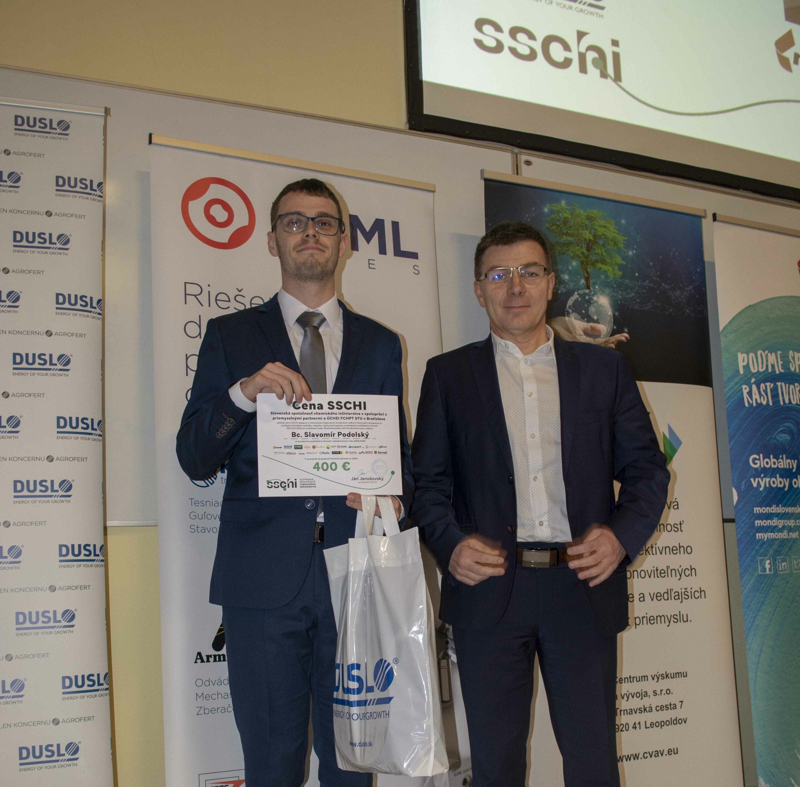 Dušan Hríbik získal cena za najlepšiu bakalársku prezentáciu ŠVK FCHPT STU 2023, štipendium sponzorované našou spoločnosťou